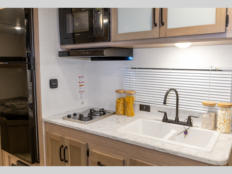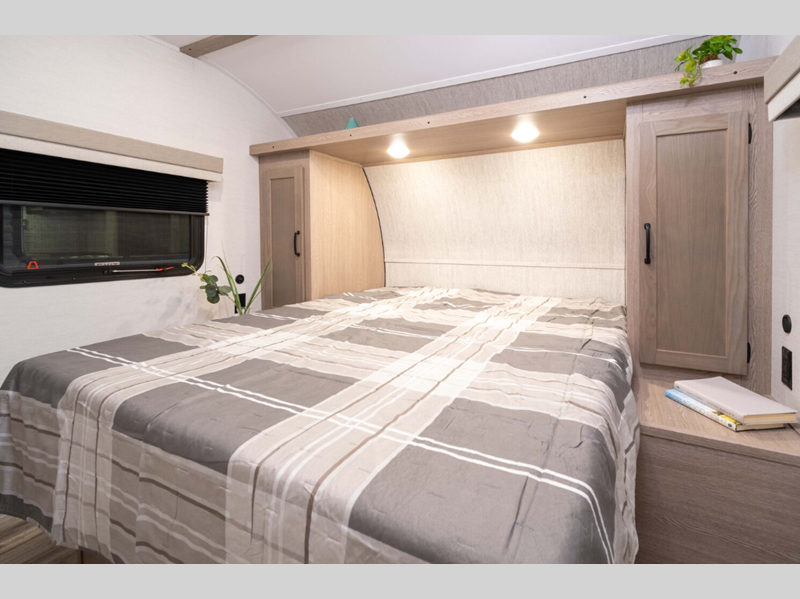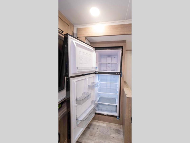 Sleeps 3 Slides 1 Length 22 ft 11 in Ext Width 8 ft Ext Height 11 ft 2 in Int Height 6 ft 8 in Hitch Weight 400 lbs Dry Weight 4360 lbs Cargo Capacity 3027 lbs Fresh Water Capacity 36 gals Grey Water Capacity 29 gals Black Water Capacity 29 gals Tire Size 14" Furnace BTU 20000 btu Available Beds Queen Refrigerator Type Everchill Refrigerator/Freezer Refrigerator Size 10.7 cu ft Cooktop Burners 3 Number of Awnings 1 LP Tank Capacity 20 lbs Water Heater Type Tankless AC BTU 13500 btu Awning Info Electric with LED Lights Axle Count 2 Number of LP Tanks 2 Shower Type Radius Electrical Service 30 amp Similar Floorplans