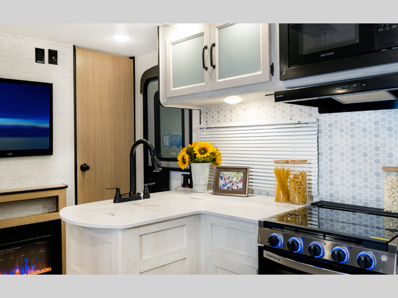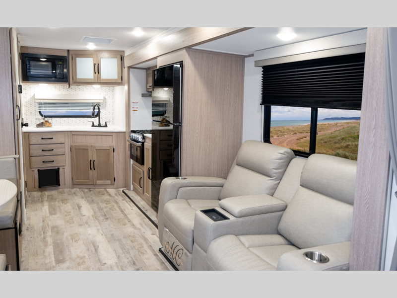 Sleeps 3 Slides 1 Length 30 ft Ext Width 8 ft Ext Height 11 ft 1 in Int Height 6 ft 8 in Hitch Weight 550 lbs Dry Weight 5990 lbs Cargo Capacity 1560 lbs Fresh Water Capacity 36 gals Grey Water Capacity 68 gals Black Water Capacity 34 gals Tire Size 14" Furnace BTU 25000 btu Available Beds Queen Refrigerator Type Everchill Refrigerator Size 10.7 cu ft Cooktop Burners 3 Number of Awnings 1 LP Tank Capacity 20 Water Heater Type Tankless AC BTU 13500 btu Awning Info Electric with LED Light Axle Count 2 Number of LP Tanks 2 Shower Type Standard Electrical Service 30 amp Similar Floorplans